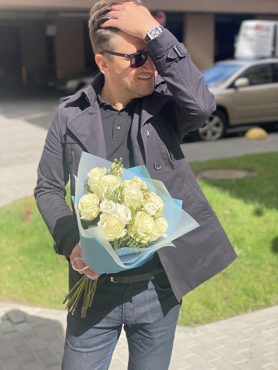 1. Мужской букет из белых розы – это символ богатства и дружбы;