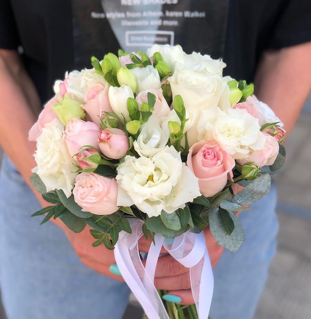 Состав: роза, кустовая роза, фрезия, эустома, зелень