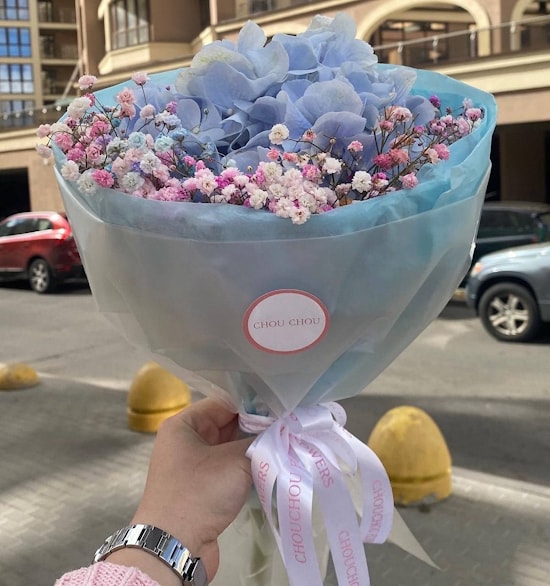 Состав Букета №57 "Нежное Московское Облако"- гортензия, гипсофила